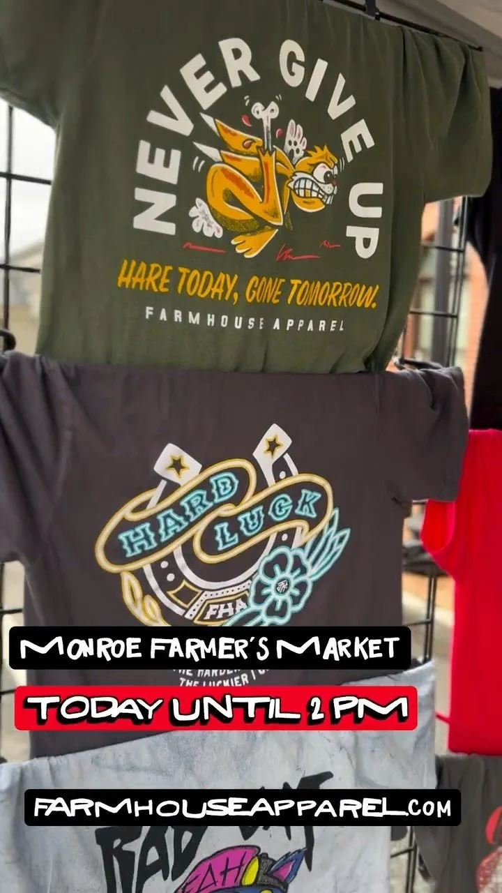 Farmhouse Apparel is an automatic screen printing shop that has been slinging ink since 2014. The perfect t-shirt should consist of a quality garment, great artwork, and the appropriate print application. We strive to provide the best in each category to fit your timeline & budget.